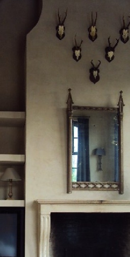 At the upper part of the chimney mantelpiece we hung a group of antlers.